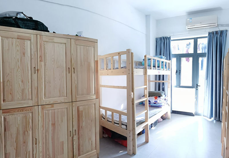 2.整潔的生活環(huán)境。學(xué)生公寓武賁閣與陽(yáng)彩軒擁有現(xiàn)代化的生活設(shè)施。每間宿舍住4-6人,擁有雙套衛(wèi)浴系統(tǒng),配備獨(dú)立洗衣機(jī)、空調(diào)。采用全實(shí)木家具床柜,健康無(wú)污染。聘請(qǐng)專(zhuān)業(yè)生活老師,科學(xué)管理日常起居。